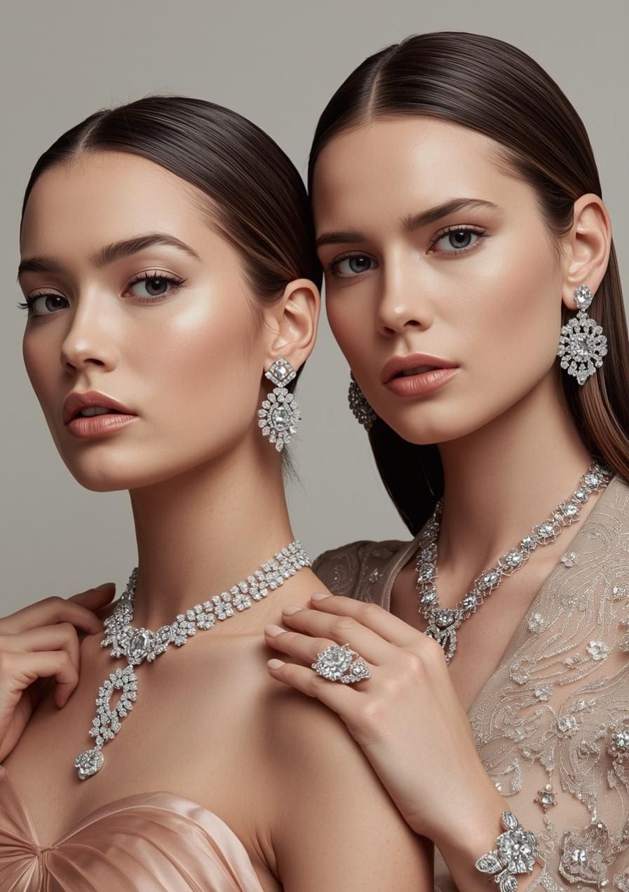 Starburst Radiance – Crystal White Diamond Cut Necklace Set