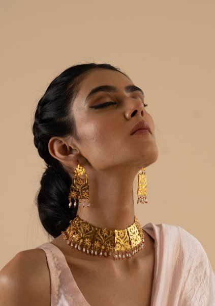 Petal Garland South Indian Choker Necklace Set – Matte Gold Finish